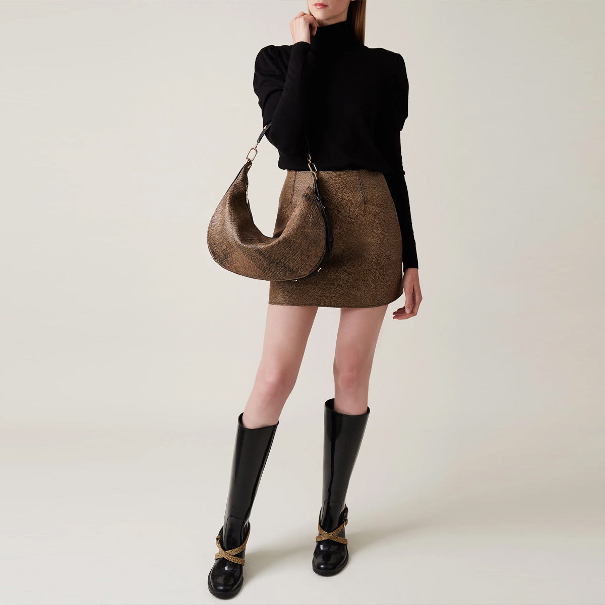 Hobo Bag Oyster Medium Graffiti OP Naturale Nero
