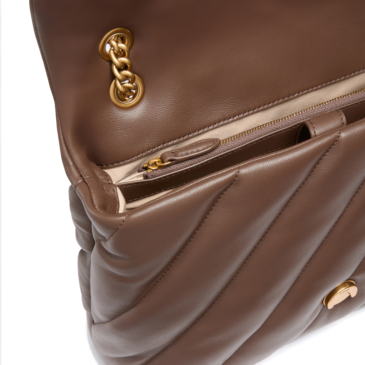 Borsa a tracolla Large Love Puff Marrone Castano Antique Gold